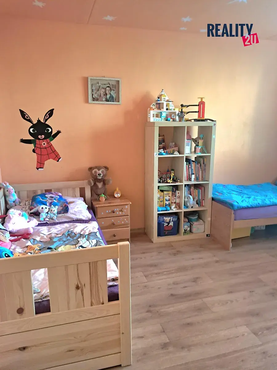 Ve výhradním zastoupení nabízíme prostorný a moderně zrekonstruovaný panelový byt 2+1 v osobním vlastnictví v Hustopečích u Brna, ulice Větrná. Byt se nachází ve zvýšeném 1.NP bez výtahu. Rekonstrukce celého domu proběhla v r. 2022. Byly vyměněny okna za plastová a celý dům byl zateplen, následovala nová fasáda domu. Rekonstrukce bytu proběhla v r. 2018 a výsledkem je upravené dispoziční řešení bytu, kdy byla zachována vstupní hala, ze které se dostaneme do zděné koupelny s vanou a WC, která byla cca o 1,5 m2 zvětšená. Z haly jsou pak také vstupy do kuchyně o výměře 12m2 a jednotlivých pokojů ( ložnice 12,1 m2, dětský pokoj s lodžií 16 m2, ). Celková podlahová plocha bytu je 53,7 m2. Rekonstrukce: nová zděná koupelna a WC, nové dřevěné obložky a dveře do koupelny, vestavěné skříně na míru v hale, podlahy- zátěžová guma v dekoru dřeva, dlažba v koupelně a WC, nová kuchyňská linka, zasklená lodžie. V oknech jsou žaluzie. Rozvod tepla je řešen centrálně, na radiátorech jsou měřiče spotřeby. Vlastní elektroměr 230/380 V. Lokalita nabízí kompletní občanskou vybavenost – v okolí najdete obchody, školy, školky, restaurace i veškeré služby. Výborná dopravní dostupnost umožňuje pohodlné spojení do centra města i do přilehlého okolí , v blízkosti dálnice D1. Energetická třída C Orientace bytu : V-Z. Celkové náklady na bydlení: 4.688,-Kč ( Fond oprav, pojištění, splátka úvěru, správní příspěvek celkem 1.603,-Kč, zálohy na energie -3.085,-Kč ) + elektřina . K bytu patří sklepní kóje 2 m2. Lodžie je po rekonstrukci, prosklená, výměra cca 4 m2- nezapočítává se do podlahové plochy bytu. Parkování : před domem dostatek parkovacích míst;