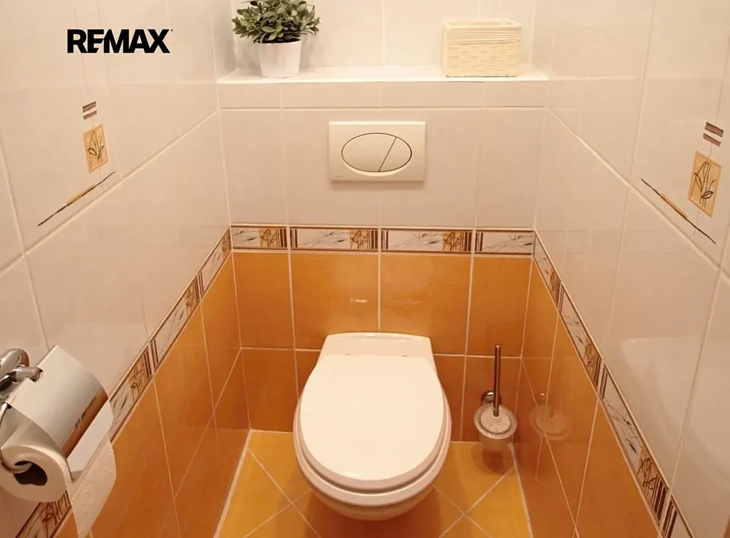 Dále je samostatné WC a koupelna disponující vanou, umyvadlem a koupelnovým nábytkem.
