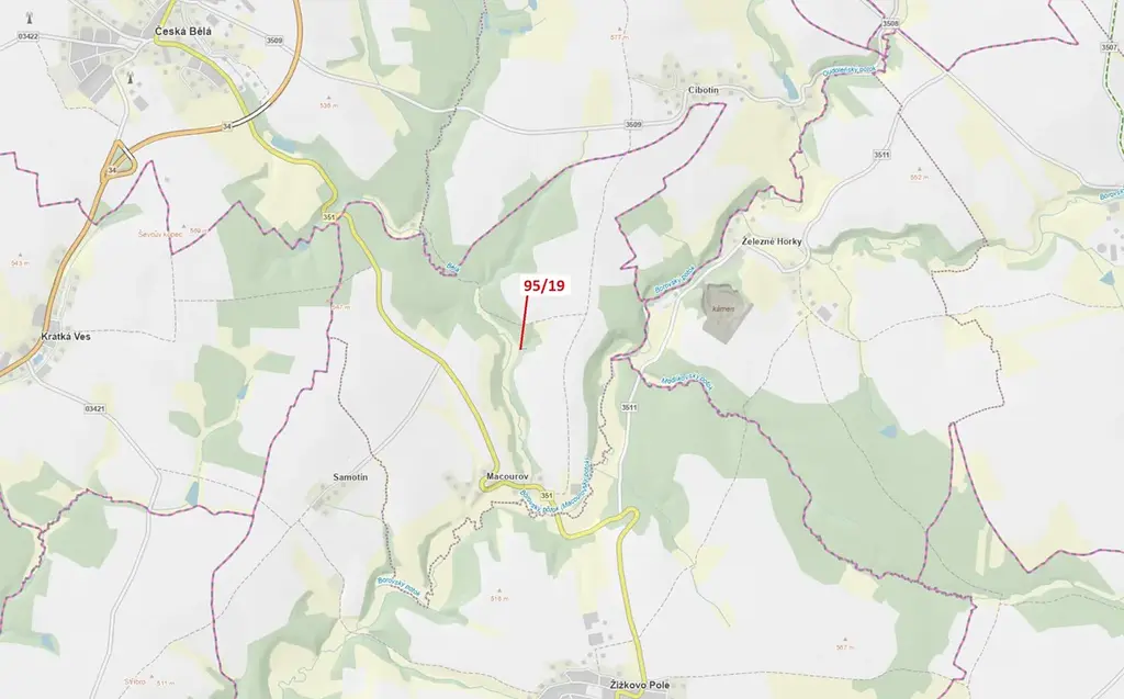 Lesní pozemek o výměře 121 m2, parcelní číslo 95/19, podíl 1/1, katastrální území Macourov, obec Žižkovo Pole, obec s rozšířenou působností Havlíčkův Brod, okres Havlíčkův Brod, Kraj Vysočina.