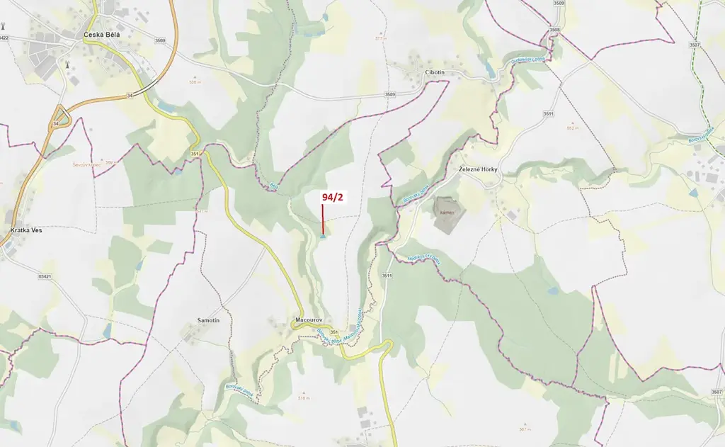 Lesní pozemek o výměře 909 m2, parcelní číslo 94/2, podíl 1/1, katastrální území Macourov, obec Žižkovo Pole, obec s rozšířenou působností Havlíčkův Brod, okres Havlíčkův Brod, Kraj Vysočina.