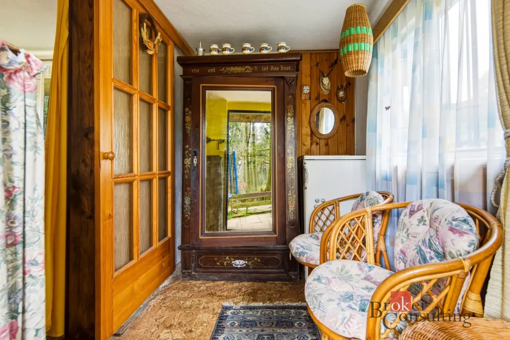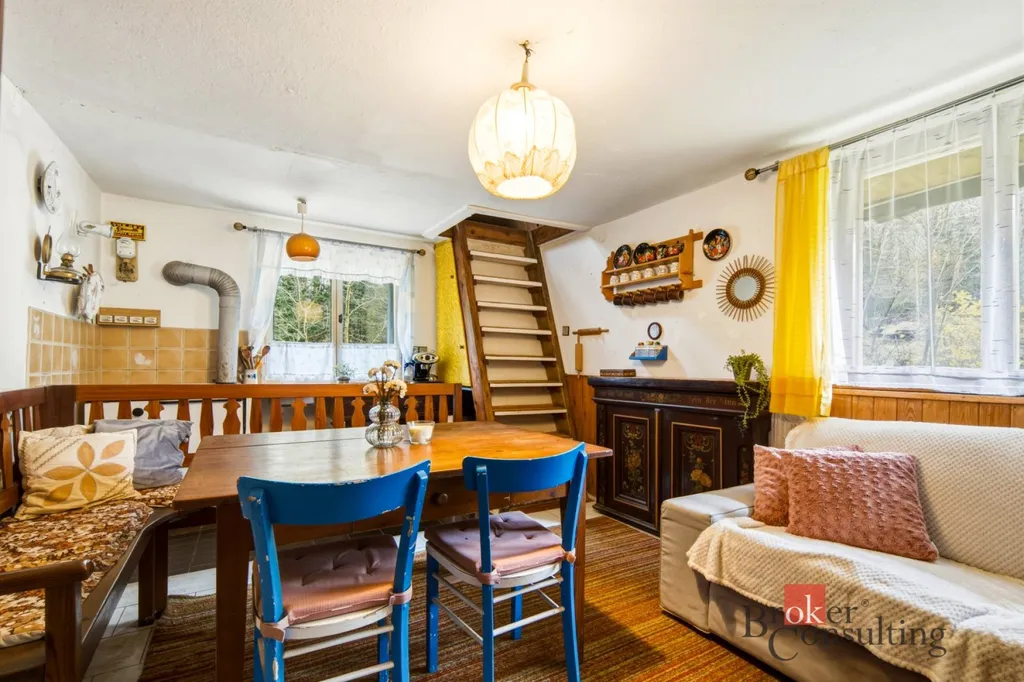Chata má obývací pokoj a kuchyň, ložnici a terasu s výhledem do zeleně. Je připojena na elektřinu, vytápění na tuhá paliva a lokální zdroj.