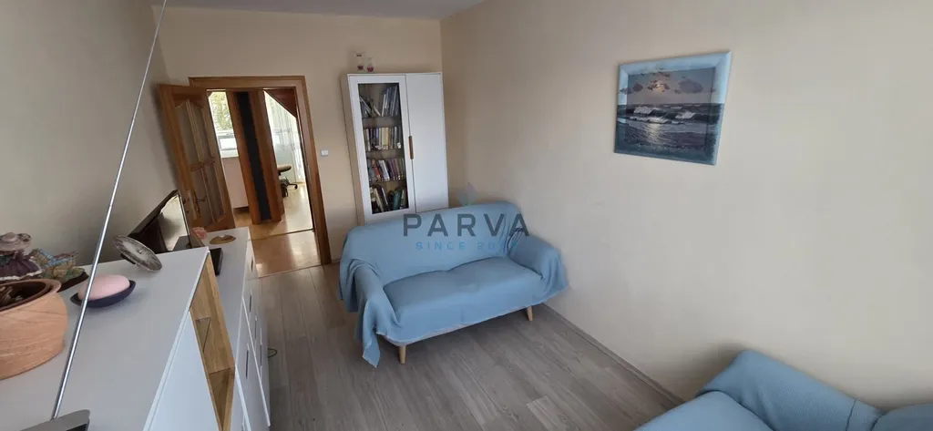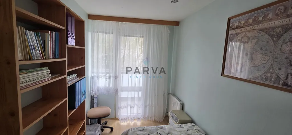 Dispozice je praktická – dva menší dětské pokoje, samostatná ložnice s postelí a vkusnými bílými skříněmi, které poskytují dostatek úložného prostoru, a obývací pokoj se sedací soupravou pro společné chvíle. Byt je zařízený tak, abyste se mohli rovnou nastěhovat bez starostí.