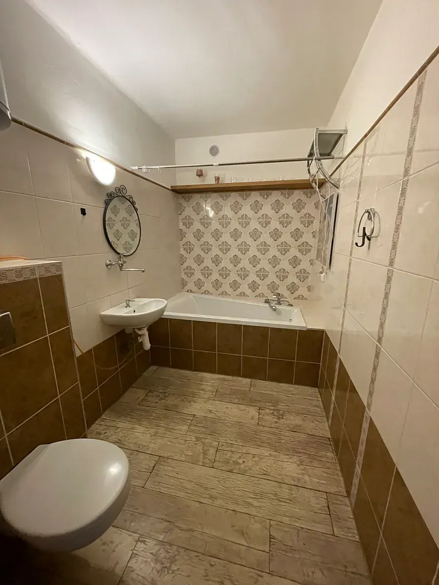 Dispozice bytu nabízí světlý rohový obývací pokoj, který díky svému umístění působí vzdušně a příjemně. Dále je zde samostatná menší ložnice, koupelna s vanou a WC. Byt má praktické a zajímavé řešení, které se odlišuje od běžných dispozic.Vytápění je řešeno pomocí infrapanelů, ohřev vody zajišťuje elektrický bojler.