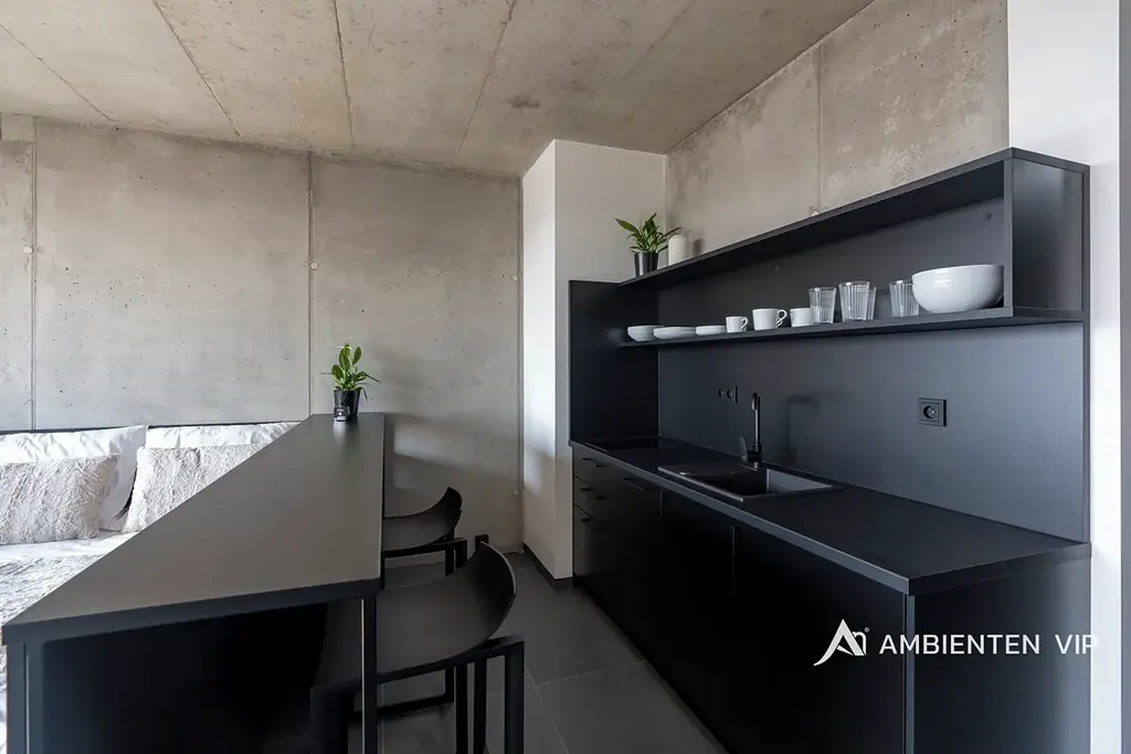 Standardem každé jednotky je plné vybavení zahrnující - postel o rozměru 160 × 200 cm a vestavěné úložné prvky, pracovní kout a barový pult, klimatizaci a venkovní žaluzie, systém chytré domácnosti Loxone, plně vybavenou kuchyň včetně myčky a nádobí. Celkový koncept vytváří harmonické a funkční prostředí ideální pro moderní městský život.