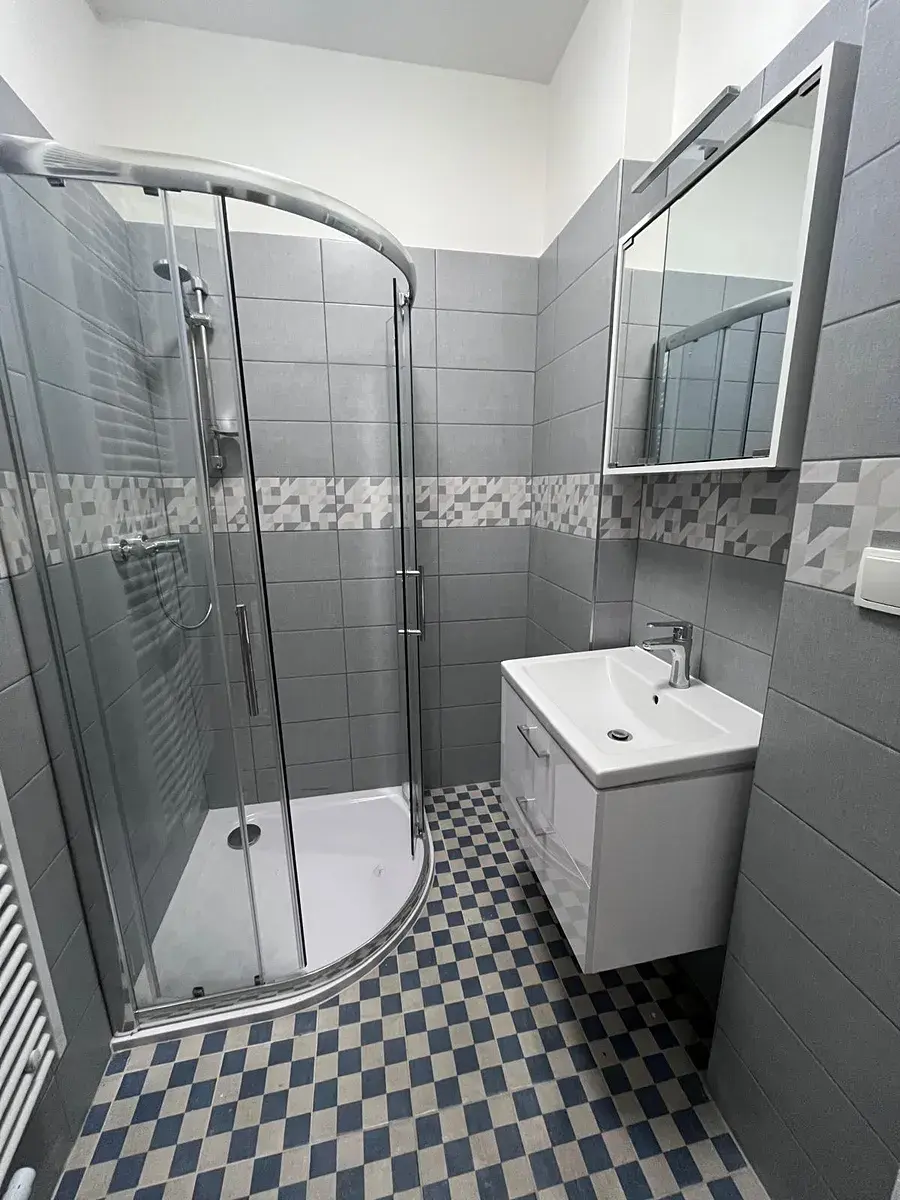 Dispozice bytu – prostorná předsíň, 3xložnice (samostatné vstupy), samostatná kuchyně s vybavenou kuchyňskou linkou, koupelna se sprchovým koutem, samostatné WC. Kuchyňská linka je vybavena sklokeramickou varnou deskou, elektrickou troubou, digestoří, myčkou nádobí a je zde místo pro pračku. Byt je nezařízený. Vytápění a ohřev vody plynovým kotlem. Kuchyně a jeden pokoj jsou situovány do ulice, zbylé dva pokoje jsou situovány do vnitrobloku.