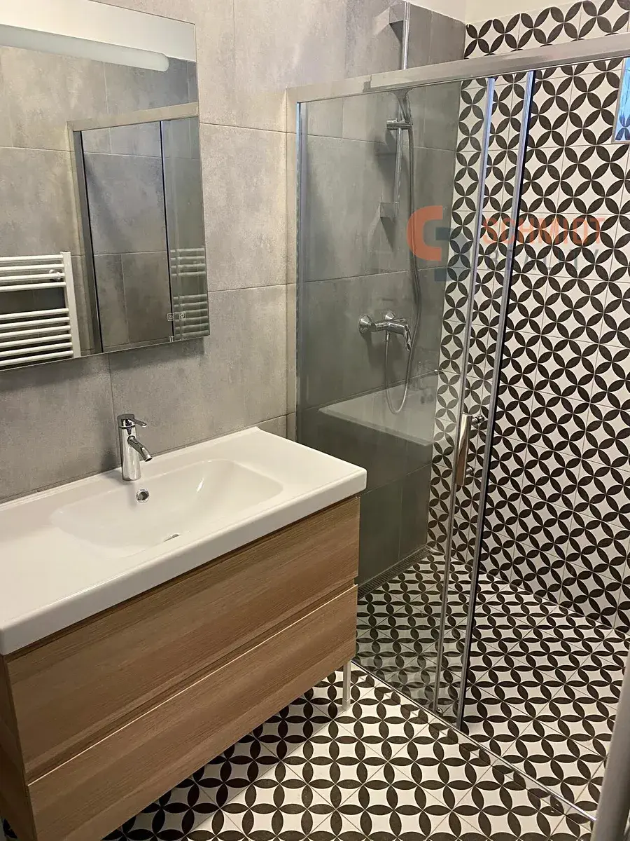 Nabízíme k pronájmu velice pěkný byt o dispozici 2+1 s výměrou 68 m2 na lukrativní adrese v klidné části města Mikulov. Jedná se o bytový dům, který prošel renovací a jsou zde pouze 4 bytové jednotky. Díky tomu zde najdete klid v blízkosti lomu a krásné přírody. Byt se nachází v 1 NP a prošel loni kompletní a velice zdařilou rekonstrukcí. Po vstupu do bytu se v předsíni nachází vlastní plynový kotel, který je zabudovaný ve vestavěné skříni s dalšími úložnými prostory. Po levé straně je prostorná koupelna se sprchovým koutem. Hned vedle se nachází samostatné WC a komora s dalším úložným prostorem a místem pro pračku. Po pravé straně je velice prakticky a vkusně řešená kuchyň. Je zde myčka, lednička s mražákem, indukční deska, trouba i digestoř. Z kuchyně vcházíme do velkého obývacího pokoje, který je propojený dveřmi s prostornou ložnicí. Ta má samostatný vchod i z předsíně a i zde se nachází vestavěná skřín. Podlahu tvoří vinyl. Okna jsou plastová,  s výhledem do přírody. Měsiční náklady na bydlení jsou 5000 Kč. Díky své poloze a velikosti se jedná a velice zajímavou nabídku kvalitního bydlení ve vyhledávané lokalitě. Město Mikulov disponuje veškerou občanskou vybaveností. Doporučujeme osobní prohlídku. Byt je volný od 1.5