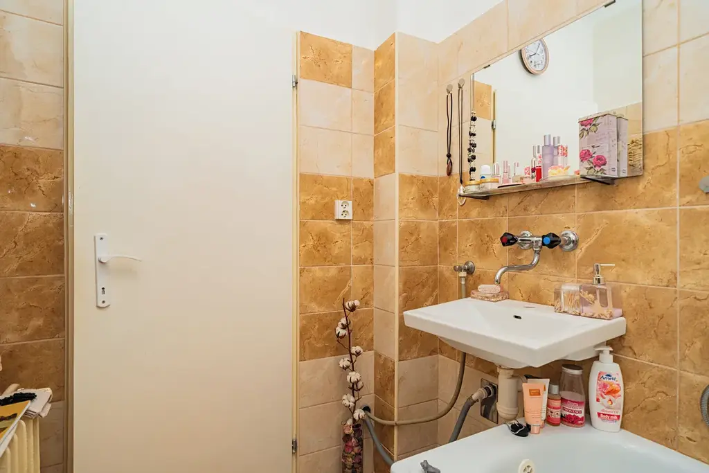 Byt - 37 m2 OP + 7 m2 terasa s příznivou orientací - J / Z, se nachází v 5. posledním patře cihlového domu v docházkové vzdálenosti - tři minuty, od stanice metra Vyšehrad.