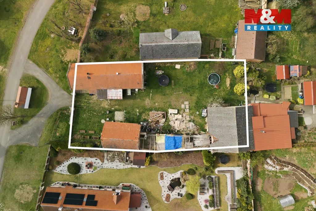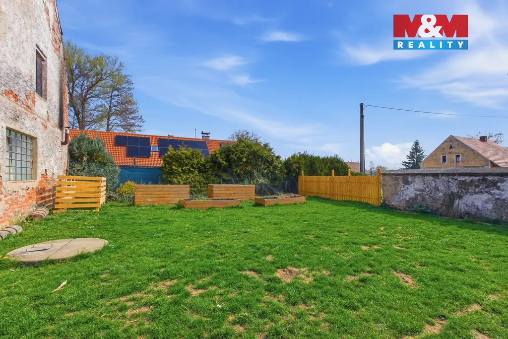 Dům se nachází na prostorném pozemku o výměře 1 533 m² s rozlehlou zahradou a stodolou. K dispozici je elektřina, vlastní studna, velká jímka, částečné podsklepení a vytápění kotlem na tuhá paliva.