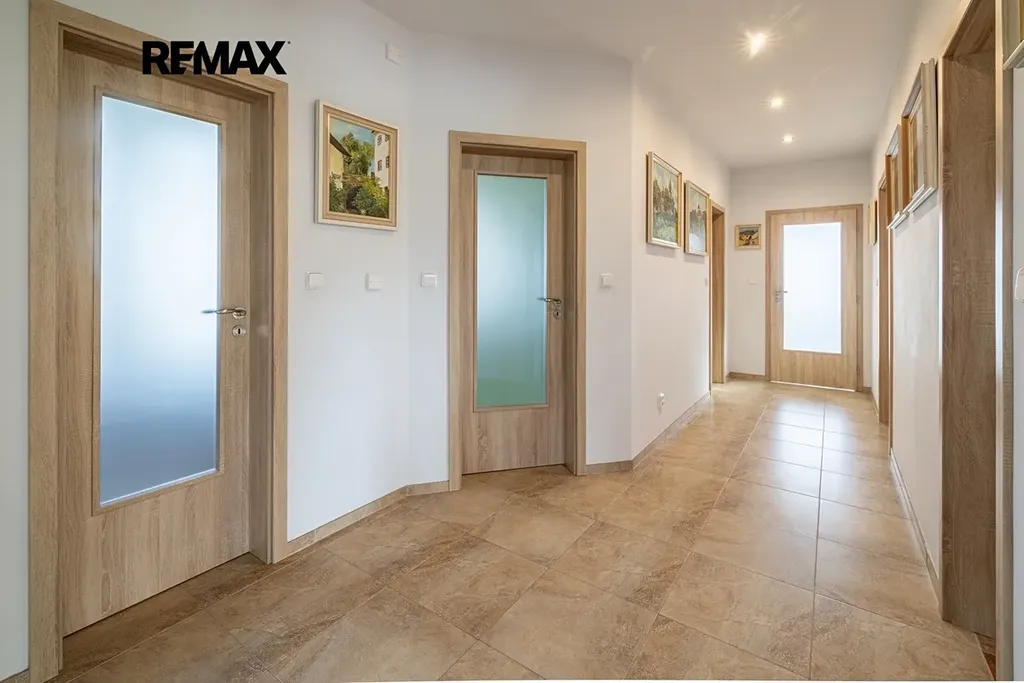 Promyšlená dispozice do posledního detailu. Díky velkému obývacímu pokoji a dostatečnému množství oken je možné obývací pokoj přepažit a mohl by vzniknout další pokoj