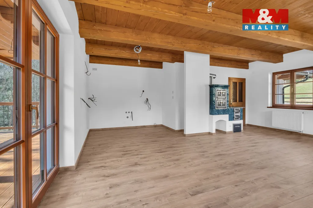 Nabízíme k prodeji výjimečnou novostavbu rodinného domu 5+kk s terasou v naprosto klidné části obce Pustá Rybná. Pozemek o velikosti 2 787 m² (zastavěná plocha 134 m²) poskytuje maximální soukromí, prostor i kontakt s přírodou. Dispozice: přízemí – světlý obývací pokoj s kachlovými kamny a kuchyní, přímý vstup na terasu a zahradu, koupelna s WC, technická místnost, ložnice; patro – ložnice, velký pokoj (dětská herna/pracovna), koupelna se sprchou a WC. Vytápění tepelným čerpadlem (podlahové topení + radiátory), vlastní studna s pitnou vodou. Okrajem pozemku protéká potok Hlučál, který dodává místu jedinečnou atmosféru klidu a pohody. Místo ideální pro relax, rodinný život i víkendový únik z města. Přístup po obecní cestě, dobrá dostupnost okolních měst a služeb. Lokalita Pustá Rybná nabízí čistou přírodu Žďárských vrchů, klid, lesy a skvělé podmínky pro turistiku, cyklistiku i celoroční relax. Domluvte si prohlídku – tohle místo si zamilujete.