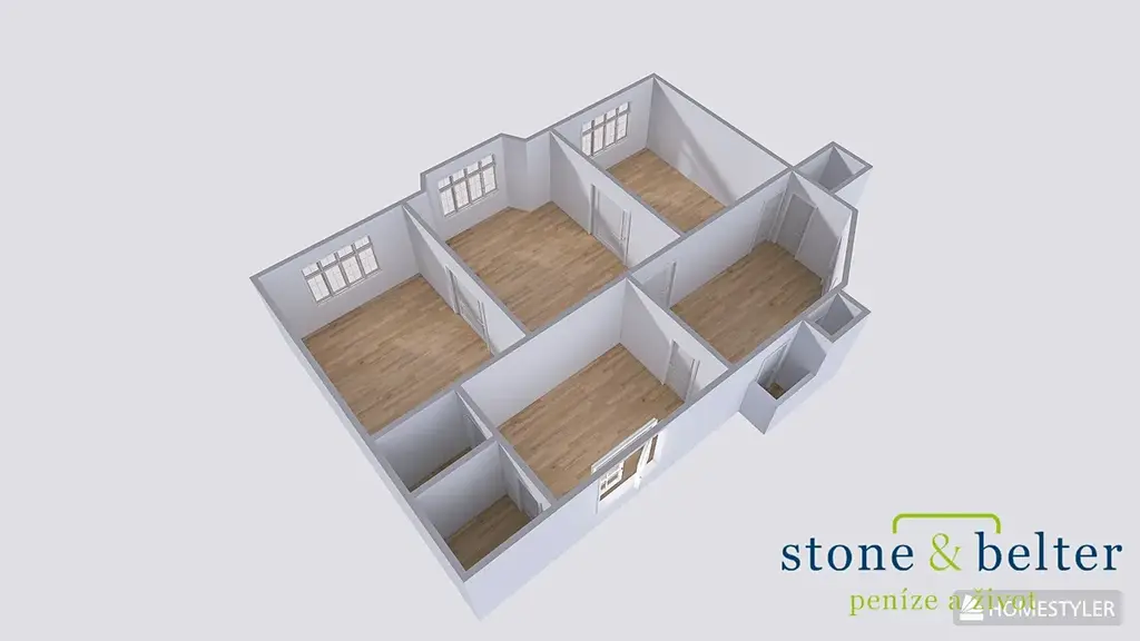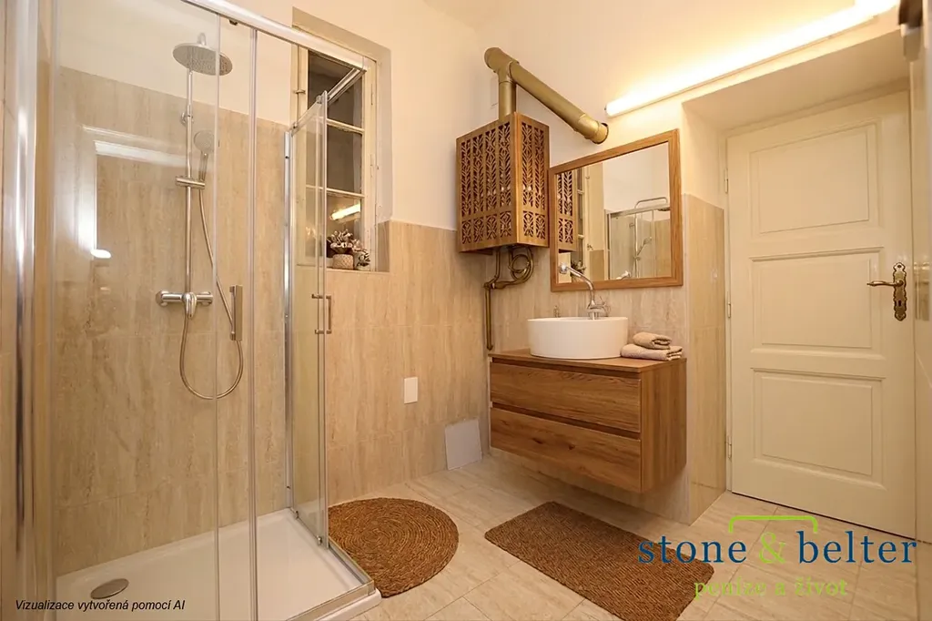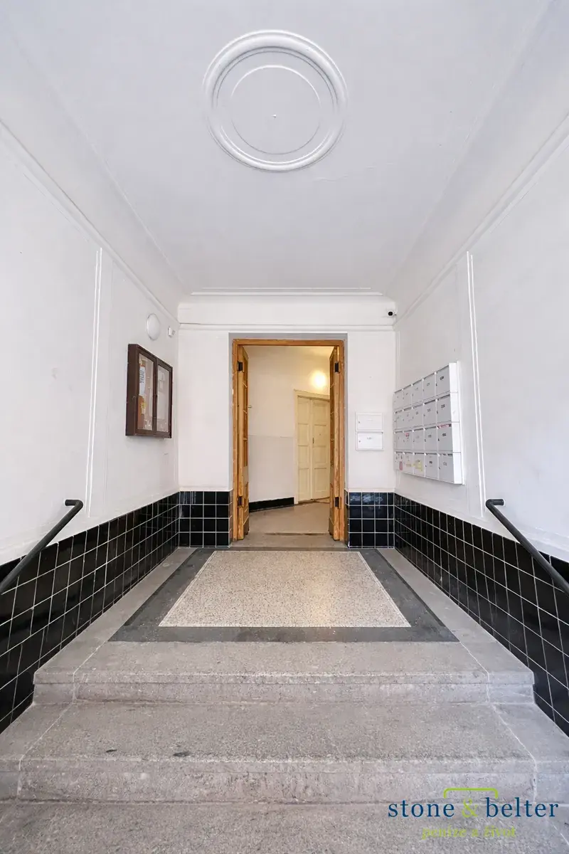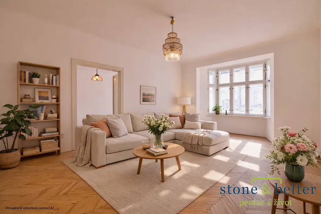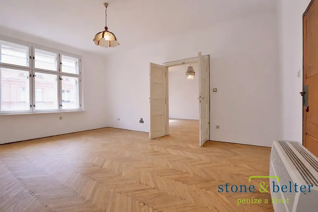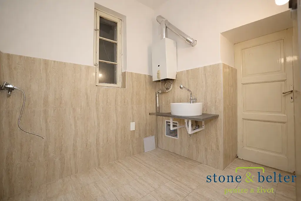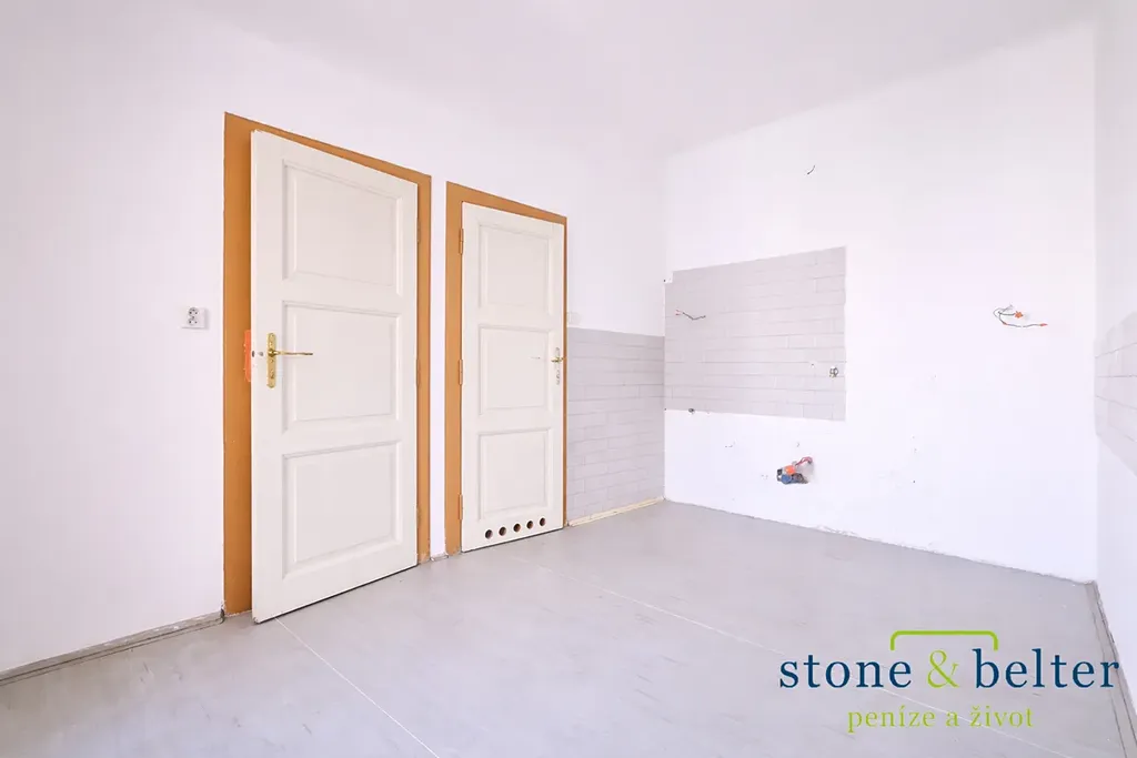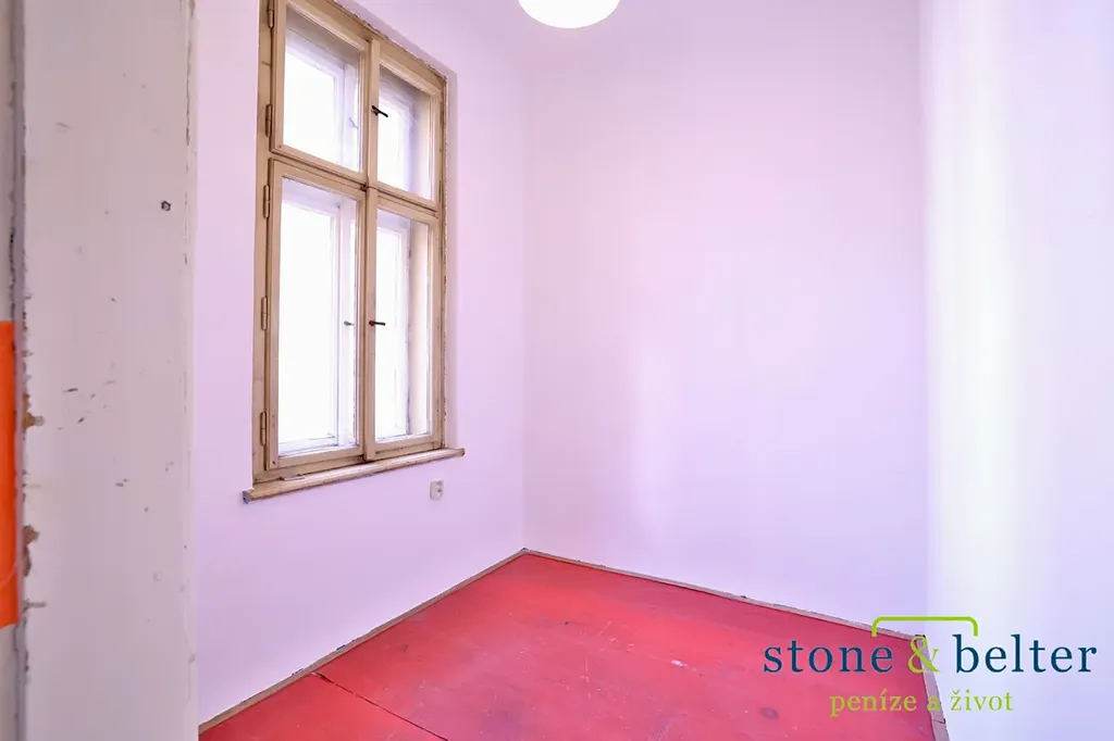 Bonusem je nadstandardně velká vstupní místnost (17,2 m²), kterou je možné přebudovat k různému využití. Byt vyžaduje kompletní rekonstrukci (vyjma oken směřujících do ulice) a náleží k němu sklep (3,8 m²).