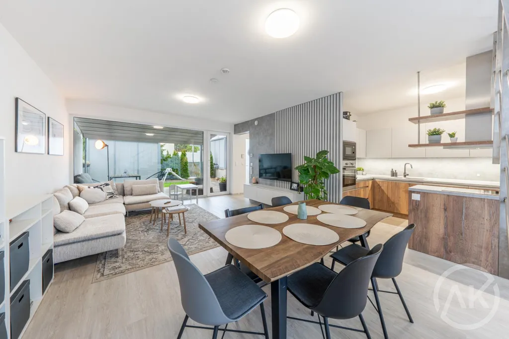 Vcházel jsem známými dveřmi a vešel do neznámého světa. Když prodáváte novostavbu, můžete se snažit, jak chcete, ale doma prostě nevytvoříte. U následného pronájmu to může vypadat dost jinak. Dům je kompletně, nadstandardně a vkusně vybaven. Od pohovky po talíře. Když byl dům prázdný, lehce mátl dojmem, že se tam nevejde jídelní stůl. A moje nejoblíbenější fotka je právě od něj. Podívejte se.