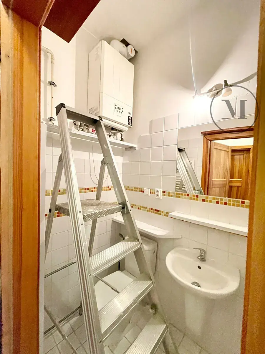 Dispozice: 1+1 (předsíň, kuchyň, obývací pokoj s vyvýšeným spacím patrem)