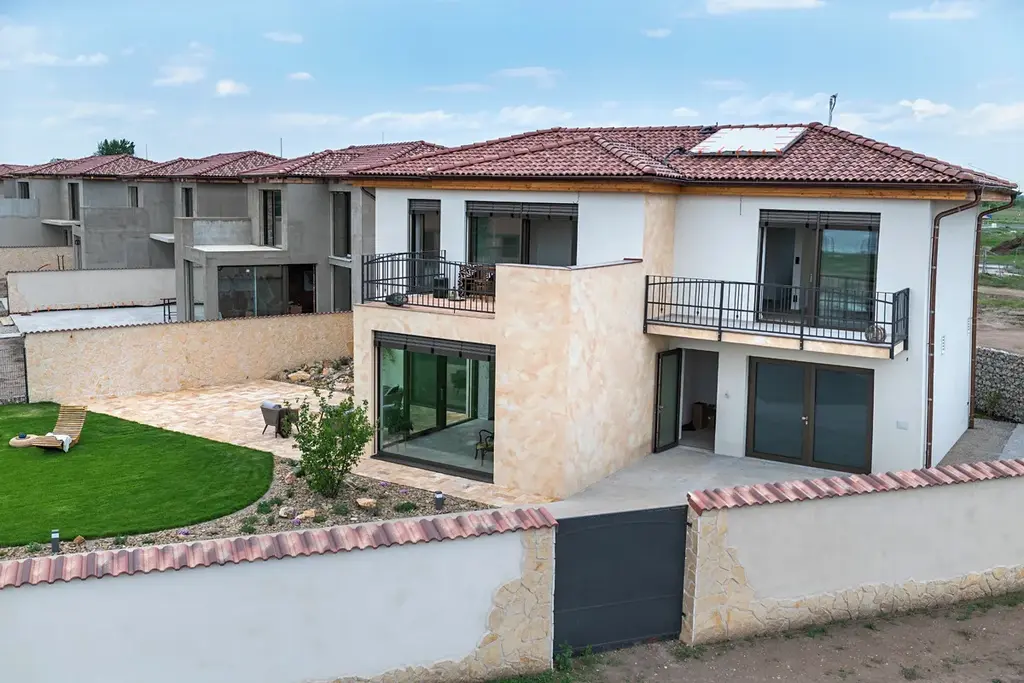 b) dokončený dům na klíč, např. vč. rekuperace, tepelné čerpadlo, solární panely, ovládání chytrého domu a další.