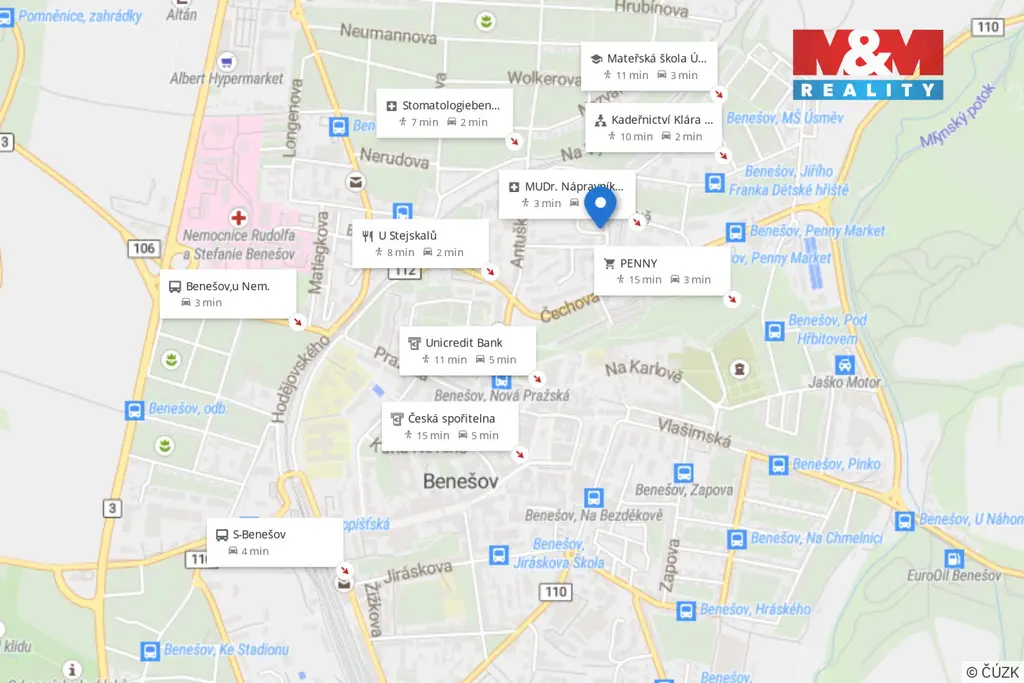 Byt je okamžitě připraven k nastěhování. Stačí pár kousků nábytku a můžete bydlet. Lokalita nabízí kompletní občanskou vybavenost – školy, školky i obchody jsou v blízkém okolí. Výborná je také dostupnost do Prahy; vlakové nádraží je v docházkové vzdálenosti, autem jste v metropoli za 30 minut. Pro volný čas se nabízí blízký zámecký park Konopiště, městský bazén či sportovní hala.