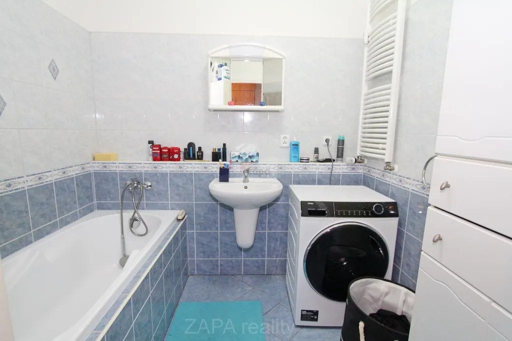 - v bytě jsou plovoucí podlahy a dlažba, v koupelně je vana,