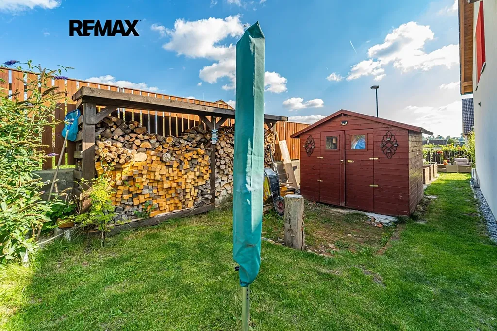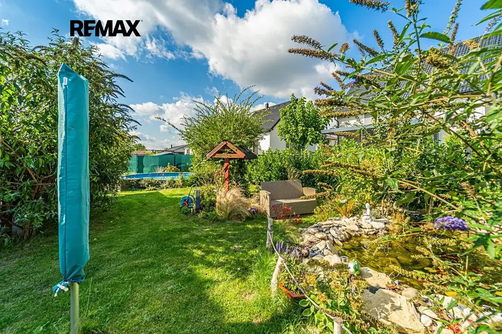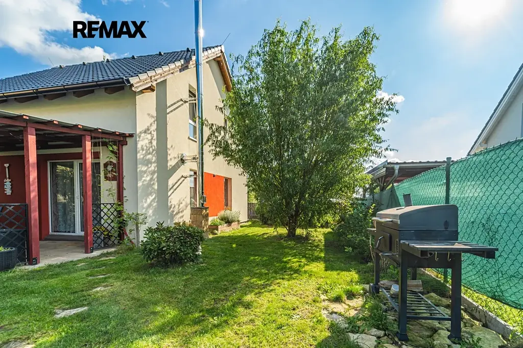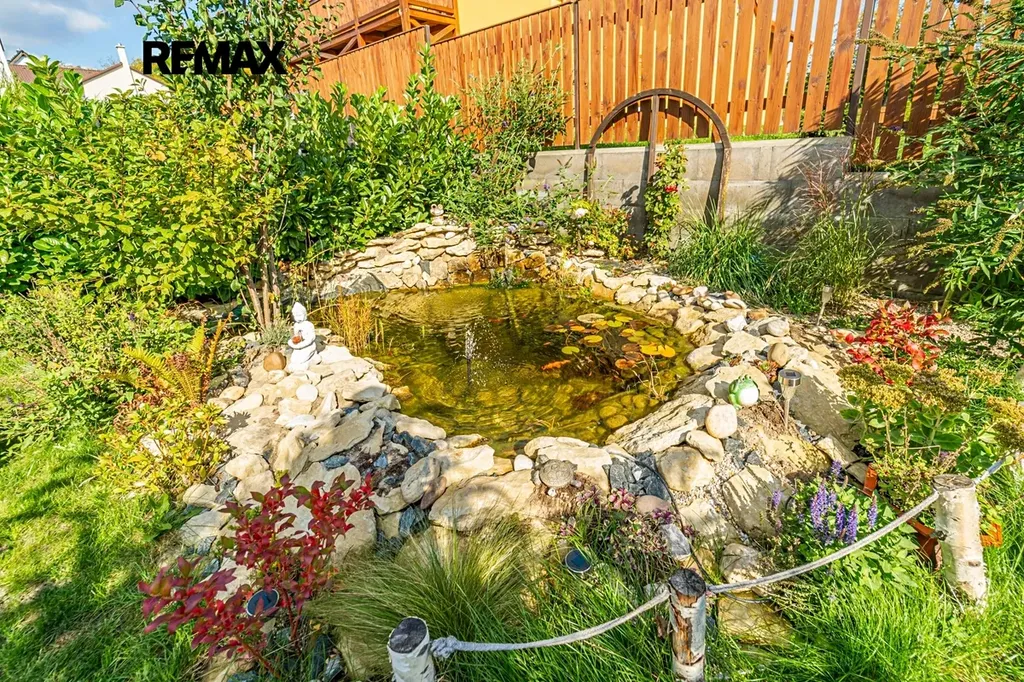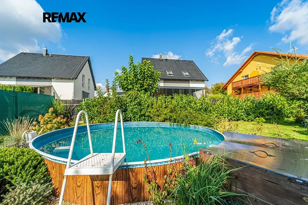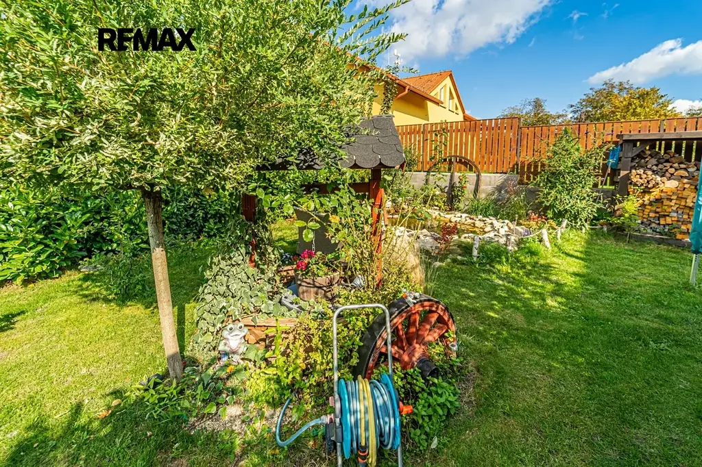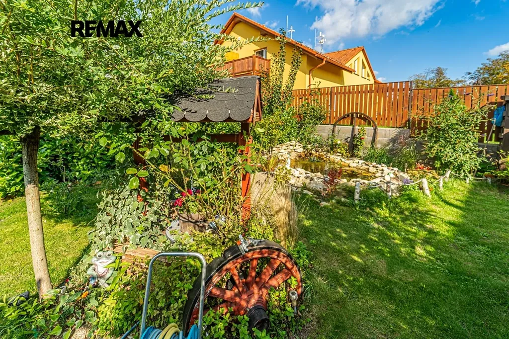Nemovitost sestává z rodinného domu o dispozici 4+kk (96 m2) , samostatně stojící garáže s montážní jámou (20 m2), zastřešené terasy (15 m2), přírodního jezírka, zahradního domku a polozapuštěného venkovního bazénu. Bazén i jezírko disponují čistícím a filtračním zařízením. Na první pohled Vás osloví pečlivě udržovaná zahrada kolem domu, citlivě kombinující okrasné a užitkové prvky.