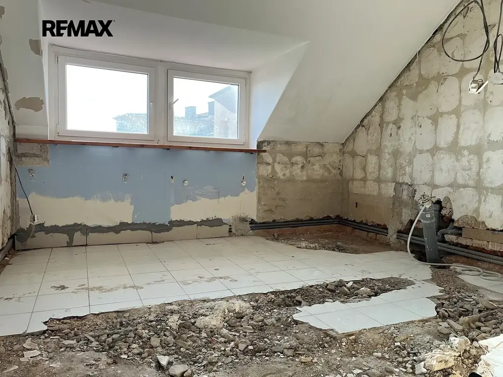 Byt je po částečné rekonstrukci (nové rozvody topení, vody a odpadů, plastová okna, nové podlahy, dveře a zárubně, výmalba). Zbývá osadit kuchyňskou linku, plynový kotel, radiátory a zejména vybudovat novou koupelnu se dvěma okny na úžasném prostoru 16,57 m2! Ve fotogalerii je vizualizace a plánek příkladu koupelny s vanou, sprchovým koutem, toaletou a saunou!