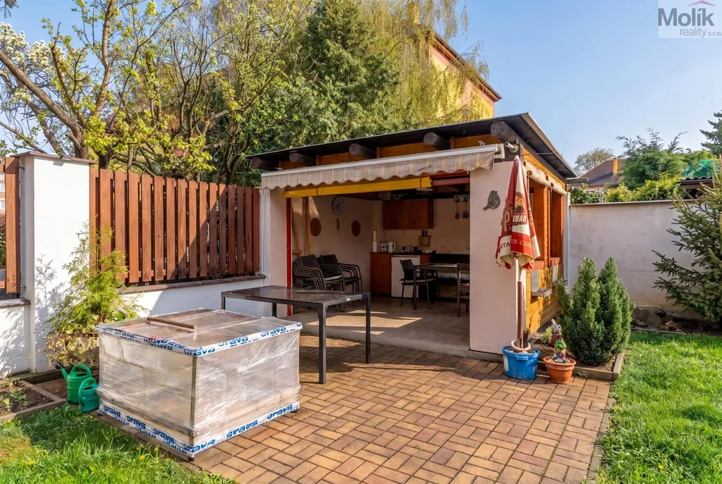Dům je z větší části podsklepen (cca ze 2/3), což nabízí dostatek úložných prostor či možnost dalšího využití. Součástí nemovitosti je udržovaná zahrada o výměře 190 m2, která poskytuje příjemné zázemí pro odpočinek i rodinné aktivity. Nachází se zde pergola k posezení a venkovní bazén, ideální pro relaxaci v letních měsících. Další výhodou je praktické zázemí domu nachází se zde dílna o výměře 13 m² a samostatná místnost pro ukládání kol, což ocení zejména rodiny či zájemci s potřebou dostatečných úložných prostor. Střešní krytina je řešena asfaltovým (bitumenovým) šindelem.