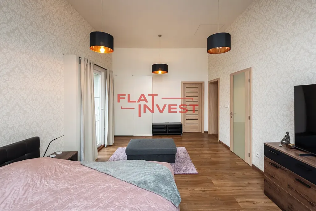 Master bedroom: Ložnice s vlastním balkonem, soukromou koupelnou (sprcha + WC) a dalším pokojem, který aktuálně slouží jako prostorná šatna.