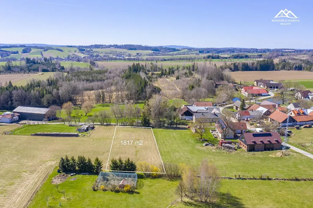 Pozemek se nachází v klidné části obce s krásným výhledem obklopený loukami a lesy a je dle územního plánu vhodný k výstavbě rodinného domu SV - smíšené obytné venkovské - bydlení v rodinných domech.