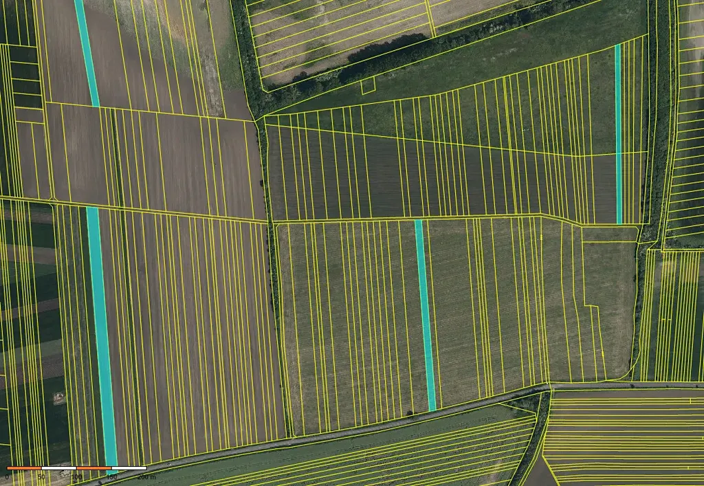 pozemky tvoří více parcel rozmístěných v rámci katastru, ve vzájemné blízkosti u přístupových cest