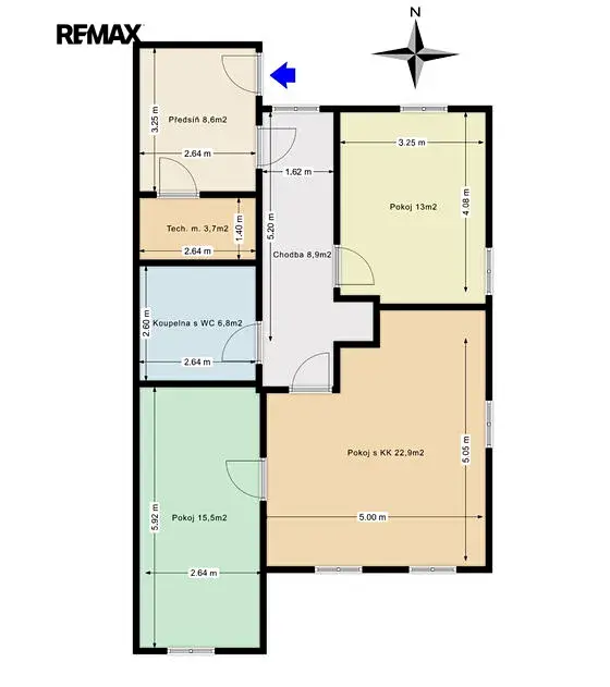 Byt, který se nachází ve 2. nadzemním podlaží rodinného domu, je velmi dobře dispozičně řešen a nabízí jak ubytování pro početnou rodinu, tak i dostatek úložných prostor. Dispozici bytu tvoří předsíň, prostorný obývací pokoj s kuchyní a krbem, dvě ložnice, koupelna s WC, chodba a technická místnost.