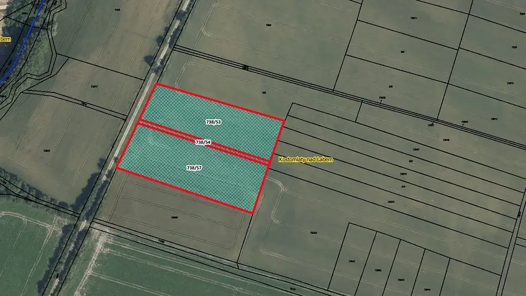 Seriózní jednání s přímým vlastníkem a bez skrytých poplatků. Nabízíme k prodeji atraktivní pozemek p.č. 738/53 o výměře 4 737 m2 ve výhradním (100 %) vlastnictví (LV č. 1149) a navazující pozemky p.č. 738/54 o výměře 450 m2 a p.č. 738/57 o výměře 5 931 m2 v podílovém spoluvlastnictví (50%), (LV 1018) v katastrálním území Kostomlaty nad Labem. Nachází se v klidné části katastru a je v současnosti řádně obhospodařovány místním zemědělcem. Přístup zajištěn přes obecní pozemky.