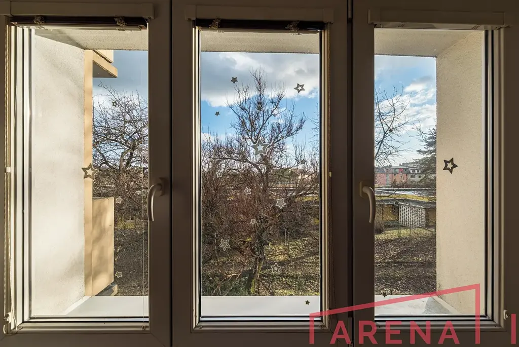 Velkou výhodou je balkon s výhledem do zahrady domu, který poskytuje příjemné soukromí a klid mimo ruch ulice.