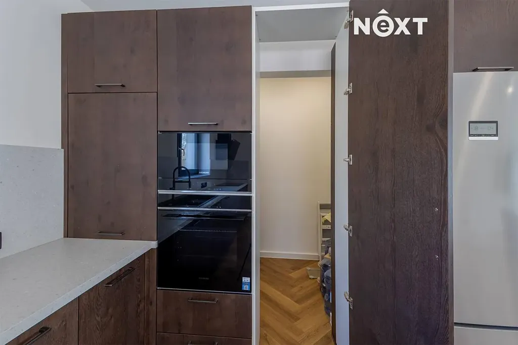 Kuchyně je vybavena kvalitními vestavnými spotřebiči: Indukční varná deska Siemens 80 cm, vestavná myčka nádobí Siemens iQ500, dřez Blanco ETAGON, antracit, 800 mm, vestavná konvekční trouba Siemens iQ700, 13 druhů ohřevu, vestavná mikrovlnná trouba Siemens iQ700, kombinovaná chladnička s mrazničkou Bosch Serie 6: chladnička 479 l, mraznička 365 l, LED ovládání, nástěnná Digestoř Siemens iQ700, 90 cm, černé sklo/nerez, cookConnect System, iQdrive motor, vestavěný drtič odpadu