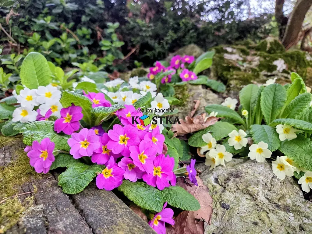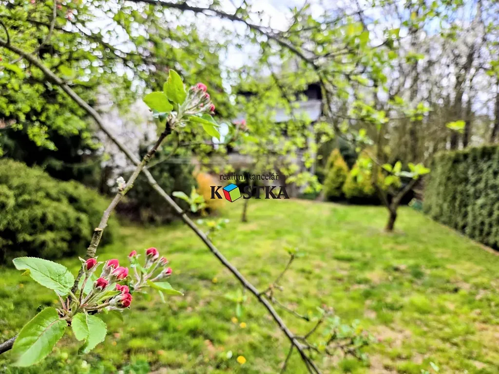 Na pozemku jsou jak ovocné, tak i okrasné stromy a keře. Za chvíli se také zazelená vinná réva popínající se na jedné stěně chaty a na podzim můžete uspořádat vinobraní.