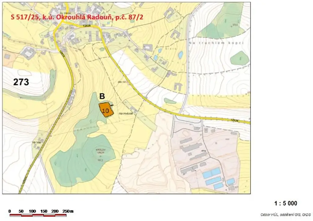 Jedná se o prodej lesního pozemku parc. č. 87/2 o výměře 2772 m2, nepravidelného tvaru, obklopeného zemědělskými a lesními pozemky jiných vlastníků, dobře přístupného, zarostlého převážně listnatými stromy a keři. Na pozemku se nachází i několik smrků a borovic.