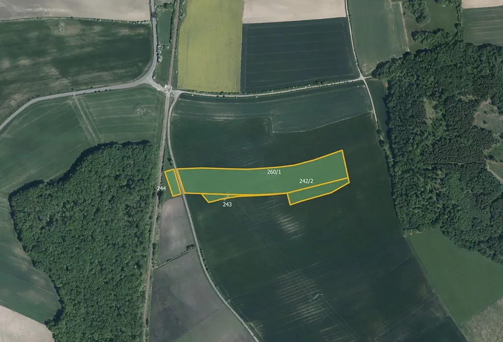Pozemky se nacházejí na listu vlastnictví č. 28 a jedná se o parc. č. 242/2, 243, 244 a 260/1.