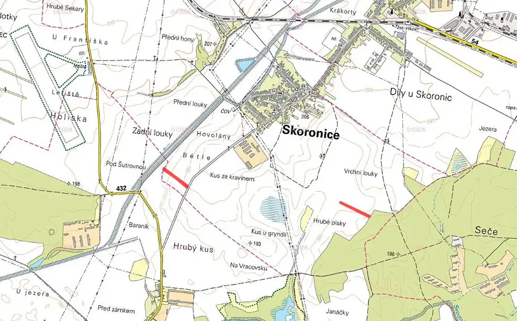 V katastrálním území Skoronice, okres Hodonín, nabízíme k prodeji ornou půdu ve výlučném vlastnictví. Pozemky jsou zapsány na LV č. 1042 a tvoří je dvě samostatné parcely:
