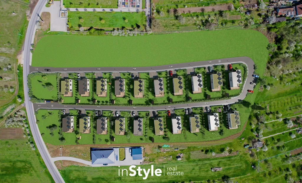 Projekt rodinných domů naleznete na kraji obce a to v té nejklidnější části. Pozemky odděluje od stávající zástavby pás zeleně, což zajišťuje komfortní využití každého pozemku s minimálním kontaktem se sousedy.