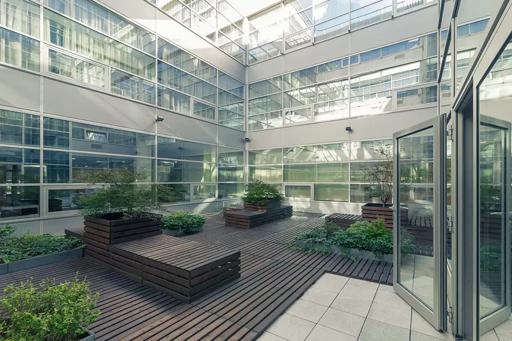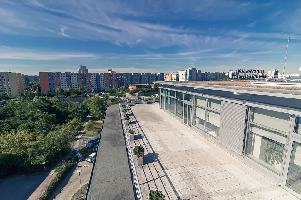 Prostor disponuje velkorysou terasou o velikosti 161 m², která výrazně rozšiřuje možnosti jeho využití.