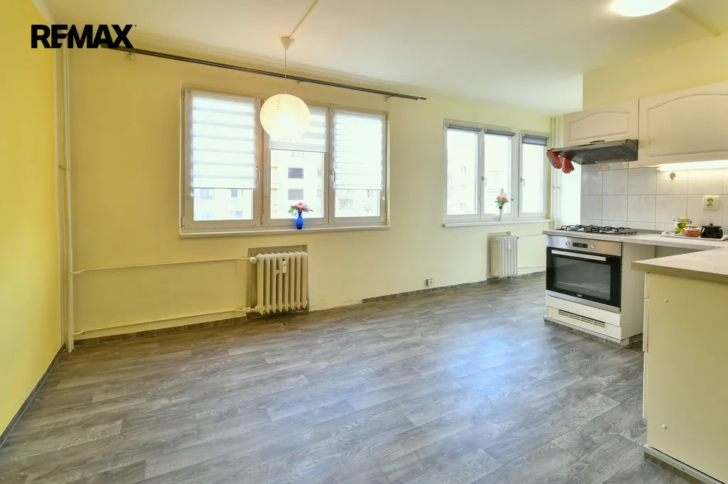 Společnost RE/MAX Future Vám nabízí jedinečnou možnost koupě bytu, 2+kk, v osobním vlastnictví, ve 4.NP, v panelovém domě, v ulici V Koutech, v Hradci Králové. Byt je o celkové výměře 54,5 m2 včetně sklepa o velikosti 3,5 m2 a balkonu o velikosti 4 m2. Výhledy z ložnice i z kuchyně jsou do vnitrobloku. Dům je v dobrém, udržovaném stavu bez výtahu, částečně zateplený. K dispozici je i kolárna a sušárna. Byt je částečně vybavený: kuchyňskou linkou s plynovým sporákem a digestoří, v předsíni jsou tři šatní skříně a v ložnici jsou dvě šatní skříně. Z ložnice je vstup na balkon.
