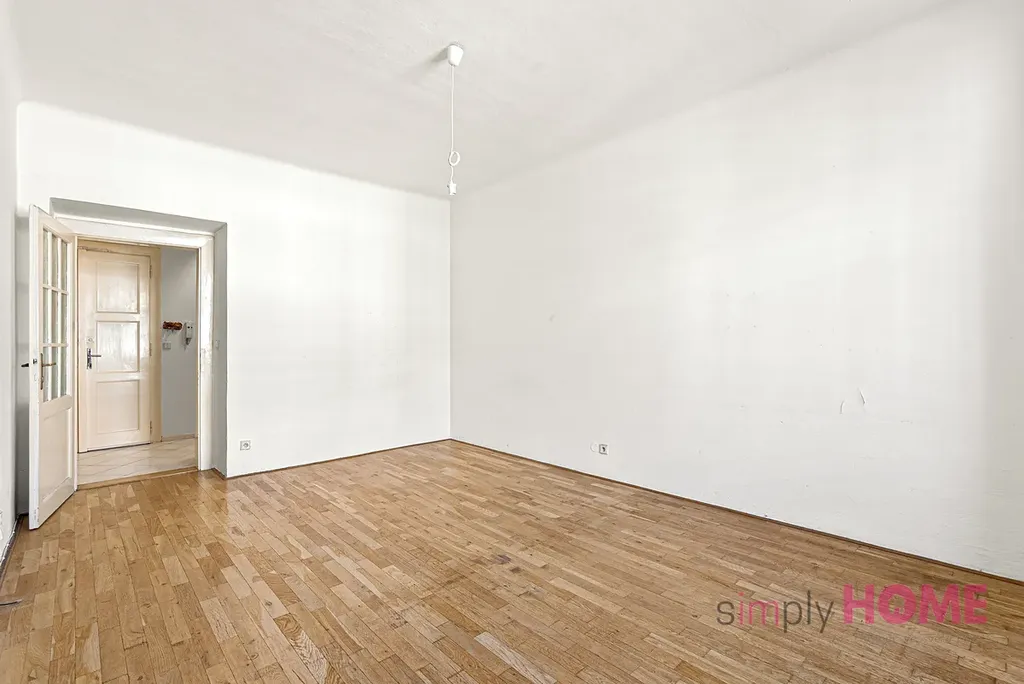 Celý byt je orientován na Severozápad do ulice Táborská a skládá se z předsíně s kuchyňským koutem, dvou neprůchozích pokojů, koupelny s vanou, komory a WC.