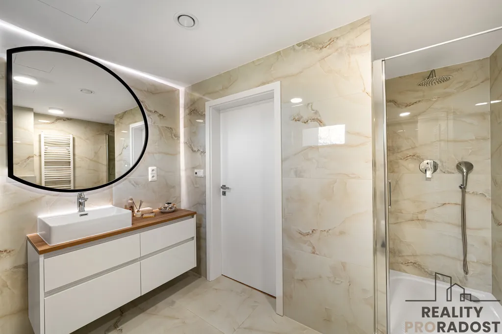 Nabízíme k prodeji výjimečnou novostavbu v prestižní lokalitě Říčany, dlouhodobě hodnocené jako jedno z nejlepších míst pro život v České republice. Nemovitost se nachází v klidném prostředí plném zeleně, s důrazem na soukromí a komfort, v docházkové vzdálenosti od oblíbeného areálu Koupaliště Jureček.
