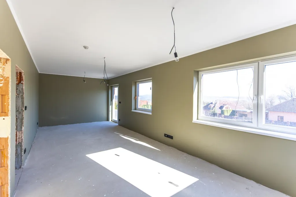 Dům je ve finální fázi svého dokončení. Pro důstojné bydlení stačí dodělat podlahy, kuchyňskou linku, obložky dveří a koupelnové příslušenství. V pozdější fázi bude nutné realizovat také fasádu nemovitosti. Koupelny jsou částečně obložené velkoformátovými obklady, v některých částech domu je již položená podlahová dlažba. U oken jsou zavedeny přípravy na předokenní žaluzie.