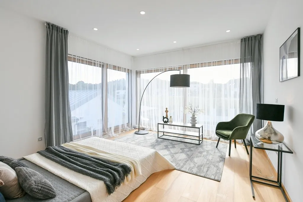 Samozřejmostí je podlahové vytápění, kamerový zabezpečovací systém, příprava pro optické sítě, LED osvětlení a sofistikovaný elektroinstalační systém německé výroby.