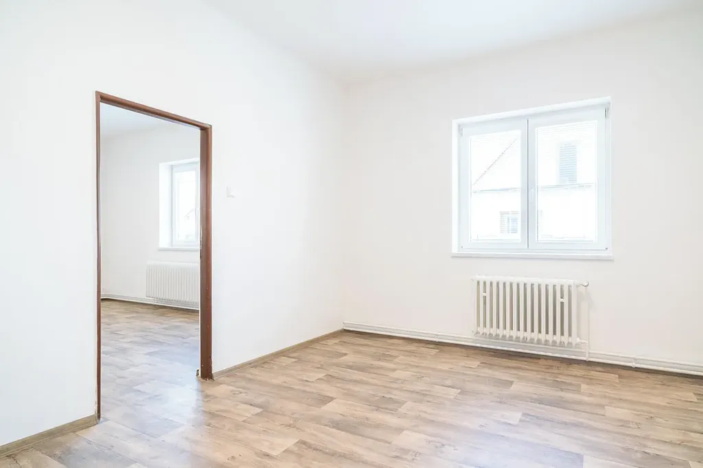 Dispozice domu zahrnuje čtyři samostatné pokoje a oddělenou kuchyni, což zajišťuje dostatek soukromí i variability využití prostoru. Výhodou jsou také tři menší uzavíratelné místnosti, které nabízejí praktické využití – jedna slouží jako šatna, druhá se nachází u kuchyně a je ideální jako spíž, třetí lze využít jako úložný prostor či kumbál. K domu náleží také sklep. Součástí je také venkovní pozemek o velikosti 54 m², přičemž v zadní části pozemku se nachází praktický výklenek, který je ideální pro vybudování příjemného venkovního posezení. Parkování je možné přímo vedle domu.
