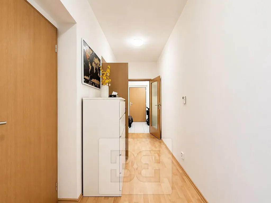 Byt disponuje prakticky řešenou dispozicí s důrazem na komfort a dostatek úložných prostor. Při vstupu do bytu Vás přivítá prostorná předsíň se šatní stěnou a komorou, která plně nahrazuje sklep a nabízí dostatek místa pro uskladnění věcí.