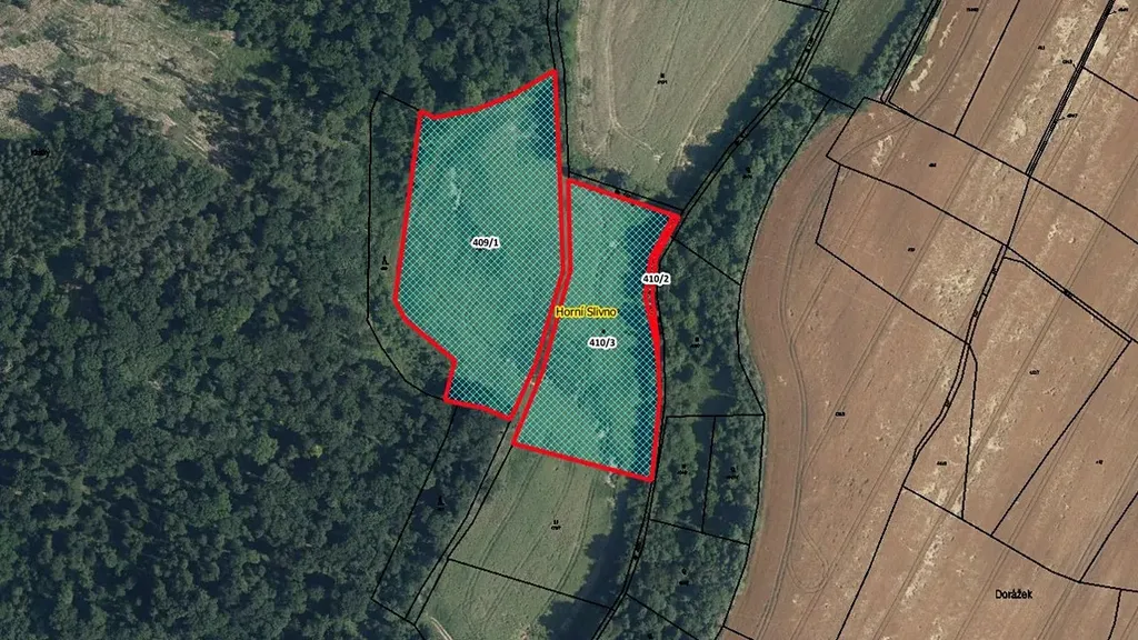 Nabízíme k prodeji atraktivní pozemky p.č. 409/1 o výměře 10 225 m2, p.č. 410/2 o výměře 222 m2 a p.č. 410/3 o výměře 6 891 m2 v katastrálním území Horní Slivno. Pozemky jsou ve výhradním (100 %) vlastnictví (LV č. 422). Nachází se v klidné části katastru a jsou v současnosti řádně obhospodařovány místním zemědělcem. Přístup zajištěn přes obecní pozemky.