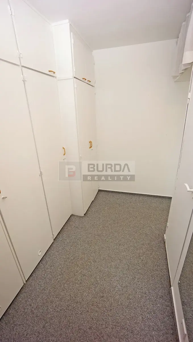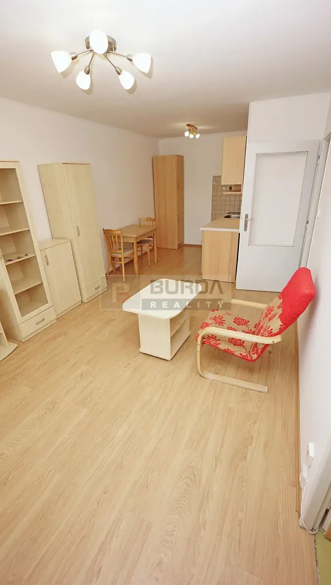 V bytě pro podnájemníka zůstane kuch. linka se sporákem, rozkládací jídelní stůl se 2 židlemi, křeslo, konferenční stolek, obývací stěna, v ložnici šatní skříň a policová skříňka, v chodbě vestavěné natřené skříně, věšáková stěna a botník.