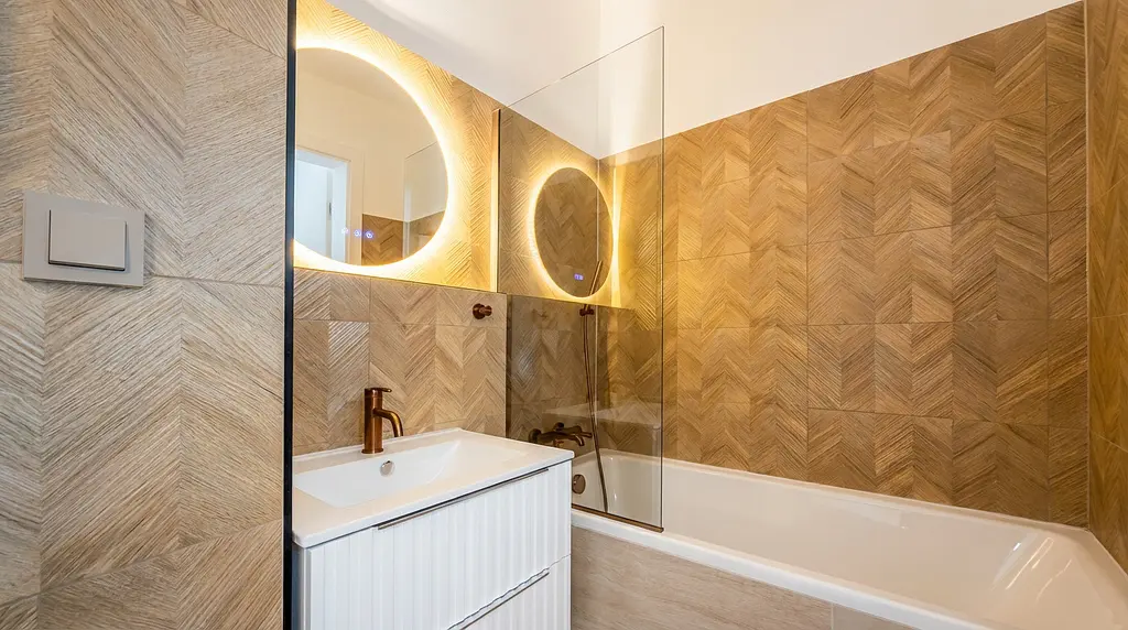 Nové rozvody: Kompletní výměna elektroinstalace, rozvodů vody a odpadů v celém bytě.