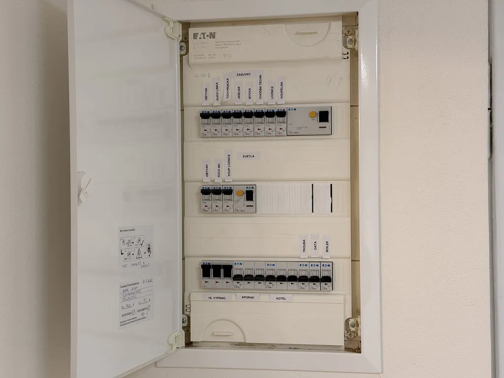 Nové vytápění a ohřev vody: Instalován nový moderní elektrokotel, energeticky úsporný bojler a kompletně nové rozvody topení. Teplotu v bytě si snadno nastavíte pomocí nového termostatu.