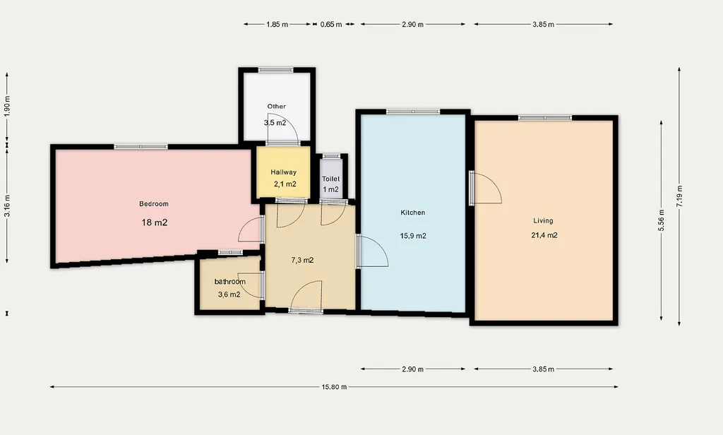 Byt je skvěle řešený a nabízí velkorysý prostor pro pohodlný život: