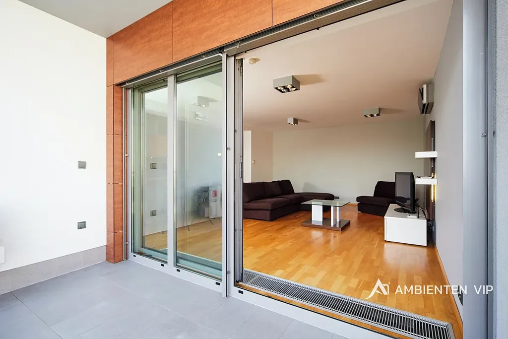 Prostorný byt o celkové ploše 87,4 m2 s terasou se nachází ve 2. patře moderní budovy s výtahem. Byt disponuje ložnicí, dále prostorným kuchyňským koutem s obývacím prostorem, z kterého je přímý vstup na terasou orientovanou na jih. Všechny pokoje jsou vybaveny nábytkem. Nájemník se tak může nastěhovat pouze s osobními věcmi a může ihned bydlet.