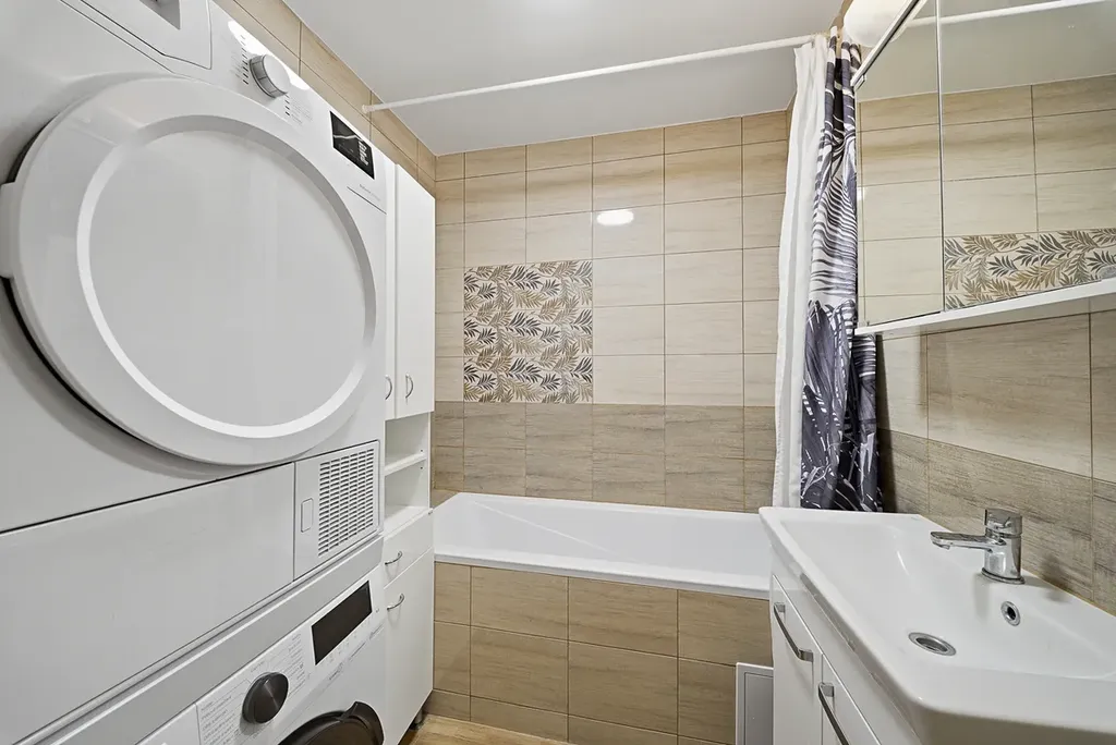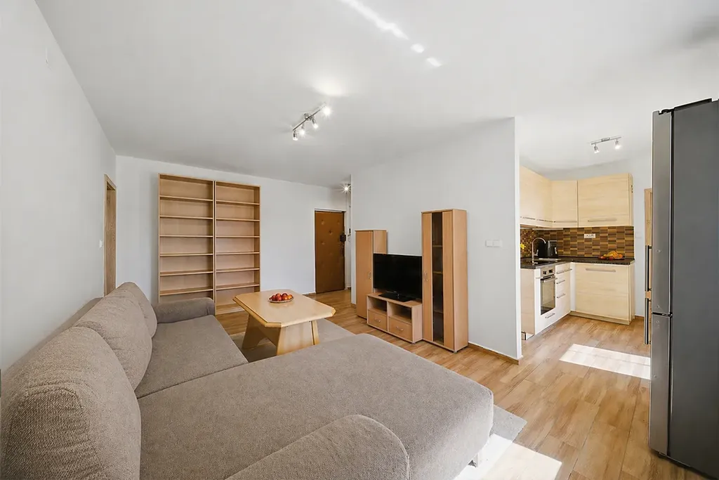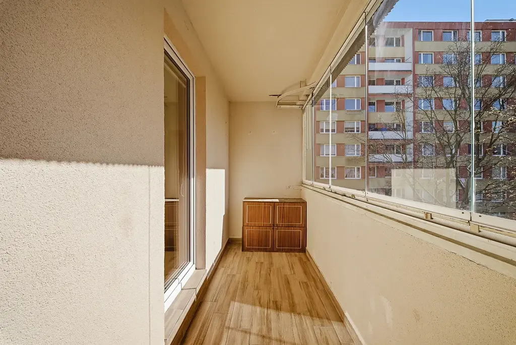 Dominantou bytu je vzdušný obývací prostor s kuchyňským koutem – přirozené centrum domova, kde se potkává rodina, vznikají každodenní momenty a kde má všechno své místo. Balkon pak nabízí příjemný únik ven – na ranní kávu, rychlé nadechnutí i večerní klid.